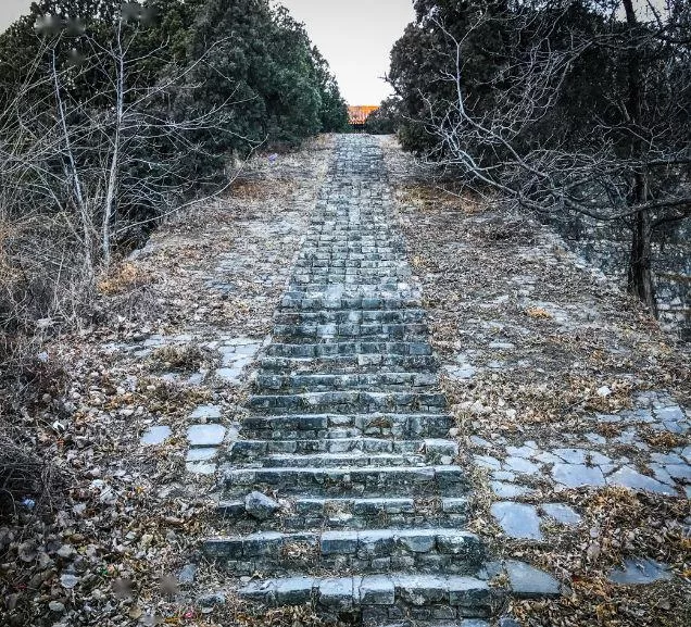 進入陵區(qū)先通過青磚鋪設的石階,雖不高不陡,卻使人心生肅穆之感。陵區(qū)坐西朝東,前方后圓,順著山勢,步步升高。