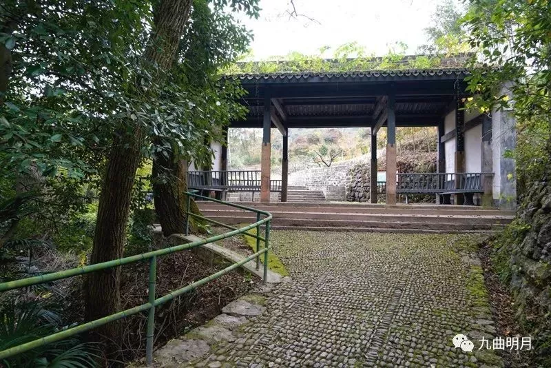 山亭地處溪口鎮(zhèn)西、雪竇山東南麓,自古為登臨雪竇山必經(jīng)之地。過亭后,上山古道依山勢而辟,石磴層層蜿蜒峻陡。自入山亭至山口御書亭,歷史上還有隱秀亭、寒華亭、漱玉亭,一路宛然迎人。明代兵部右侍郎宋琰有詩云:“一亭西入梵王家,百折千盤路轉賒。山鳥似知來客意,數(shù)聲啼上石楠花?!北闶沁@條古道的傳神寫照。
