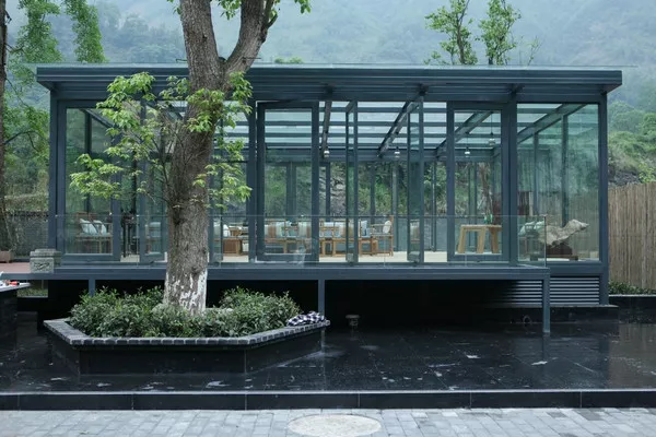 日式房間內(nèi)配有一個大露臺,設(shè)有帶傘的咖啡桌,無論晴天還是下雨,都可在露臺小憩冥想,喝杯茶。山與露臺間是水流湍急的溪水,夏天時懂得生活的成都人喜歡來這里,把腳泡進(jìn)溪水,在水上打麻將,確實巴適。偶有玩漂流的人經(jīng)過。漂流也是莊園的一個項目,若是有興趣,不妨一試。