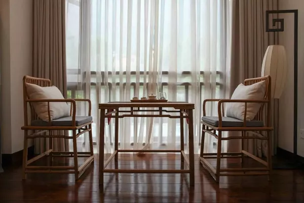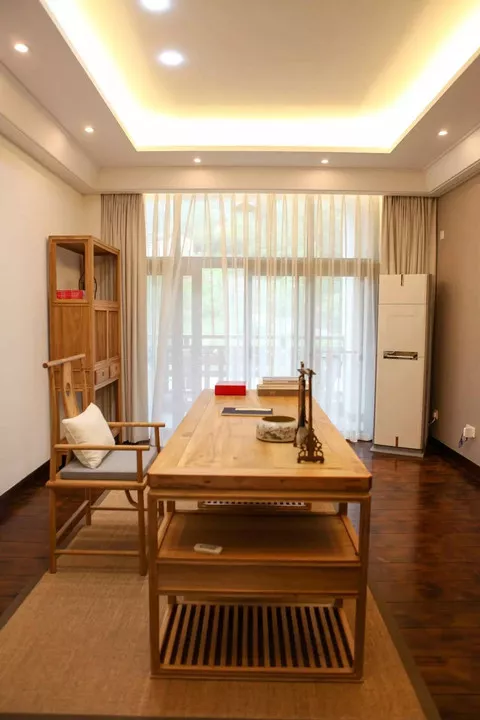 穿過莊園前廳有一個茶室,四面都是落地窗,疏影橫淺,樹的影子在木質(zhì)茶幾上輕輕搖曳。整個茶室處在水池中間,有小石板引路,方可進(jìn)入。茶室需要提前預(yù)定,一對一的私人服務(wù),尊貴級的享受。茶是來自云南的千年古茶,一小撮茶葉泡開來,芳香四溢,帶著淡淡的木質(zhì)香味混合著泥土的芬芳。稍稍抿上一口,化解心頭千千結(jié)。
