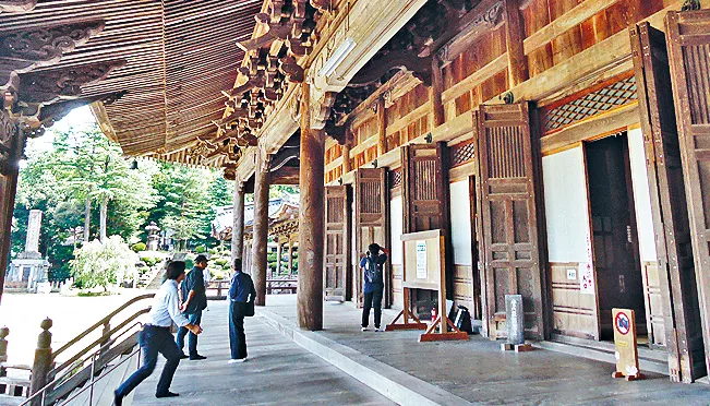 來到井波,當然不能錯過到瑞泉寺一游。這家真宗大谷派寺院,據(jù)說是由本愿寺第五代主持人綽如上人在1390年始建,曾在昔日日本戰(zhàn)國時代統(tǒng)領(lǐng) 大約一百七十家寺院,該寺在1763年被大火燒掉,今天所見雖是重建后的模樣,卻極巍峨漂亮,更成為日本北陸地區(qū)最具規(guī)模的木構(gòu)建筑物,該寺長四十五米、寬四十米的本堂,也是日本第四大的木構(gòu)建筑。