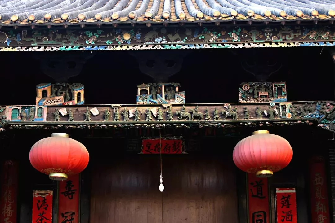 值得一提的是彭氏宗祠的精美木雕。據(jù)文物專家說,彭氏宗祠是不可多得的花祠堂。除了氣勢宏偉,造工精美亦是彭氏宗祠的代名詞。祠內(nèi)雕梁畫棟,雕刻歷史故事人物,栩栩如生。檐前壁上雕刻草木花果,幾可亂真,壁畫有漁、樵、耕、讀……美輪美奐,使人不得不贊嘆古人的智慧。