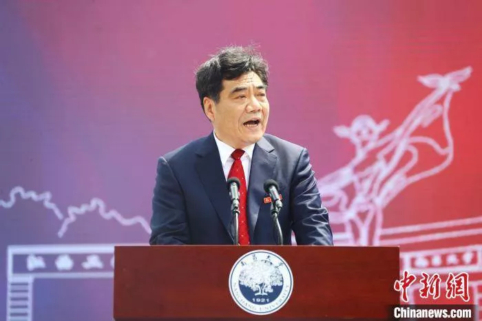 圖為南昌大學(xué)校長周創(chuàng)兵在大會上致辭?!⒄祭?攝