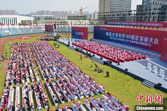 5月2日,南昌大學(xué)辦學(xué)100周年發(fā)展大會暨科技自立自強(qiáng)助推江西產(chǎn)業(yè)高質(zhì)量發(fā)展高峰論壇舉行。中新網(wǎng)南昌5月2日電(劉占昆張瑩)5月2日,南昌大學(xué)辦學(xué)100周年發(fā)展大會暨科技自立自強(qiáng)助推江西產(chǎn)業(yè)高質(zhì)量發(fā)展高峰論壇在該校前湖校區(qū)白帆運(yùn)動場召開。來自社會各界的領(lǐng)導(dǎo)嘉賓、國內(nèi)外高校代表、海內(nèi)外校友代表和在校師生歡聚線上線下,共襄盛舉、共敘情誼、共謀發(fā)展,共同見證百年南昌大學(xué)的重要?dú)v史時(shí)刻。