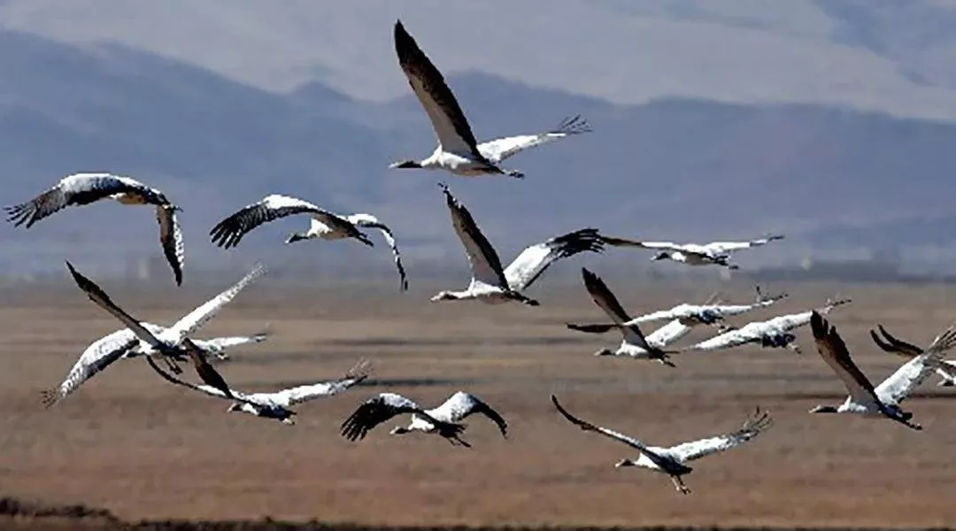 被譽為愛情忠貞之鳥的黑頸鶴,是國家一級保護動物,作為高原生態(tài)變化指示性物種,主要棲息于海拔2500米至5000米的高原草甸、河谷、沼澤間。它有個可愛的藏文名叫“沖沖”,每年從藏北地區(qū)遷徙到拉薩北部的河谷。因為受到當?shù)厝松拼?,所以拉薩林周也成為它們的越冬“天堂”。
