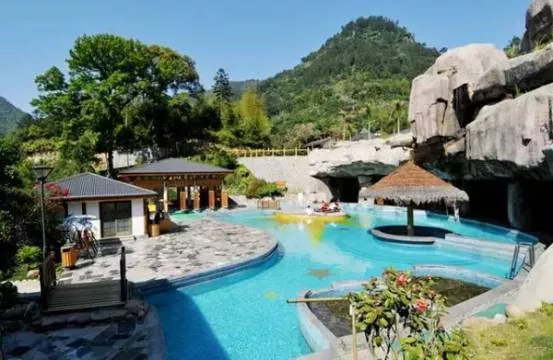 酒店的溫泉園區(qū)是福建最大的峽谷溫泉,依山而建,與自然融為一體。有大小泡池60余個,設有泡浴水療、中藥浴、石板浴、魚療、戲水池等項目。溫泉水取自原脈溫泉,100%原湯,無臭、無味、無肉眼可見物,清澈透明 ,呈弱堿性,屬碳酸氫鈉泉。含氡、氟、偏硅酸等二十多種對人體健康有益的礦物質(zhì)和微量元素,具有較高的保健價值,常泡可達到美容養(yǎng)生的功效。