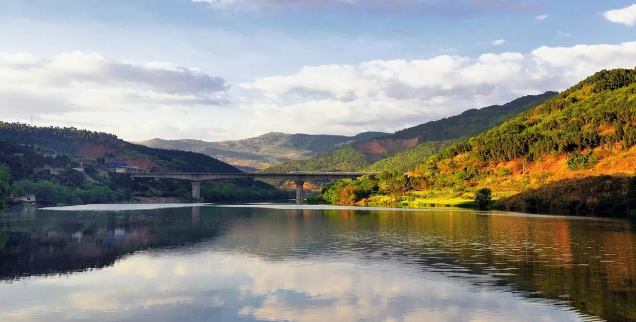 沿山而下,穿江而過,又順左岸的山勢