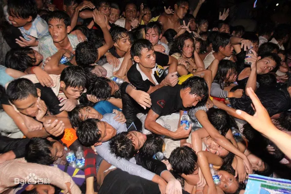 2010年11月22日是柬埔寨為期三天傳統(tǒng)送水節(jié)的最后一天,當(dāng)時全國各地約有300萬人涌向金邊觀看在王宮前的洞里薩河上舉行的龍舟大賽以及在金邊鉆石島等地的慶祝活 動。當(dāng)?shù)貢r間22日23時左右,由于游人太多,金邊市區(qū)連接鉆石島的一座橋產(chǎn)生晃動,引起人們恐慌,導(dǎo)致相互擁擠踩踏事故,事故至少有456人死亡,700人受傷。死者大多因窒息或內(nèi)傷而亡。