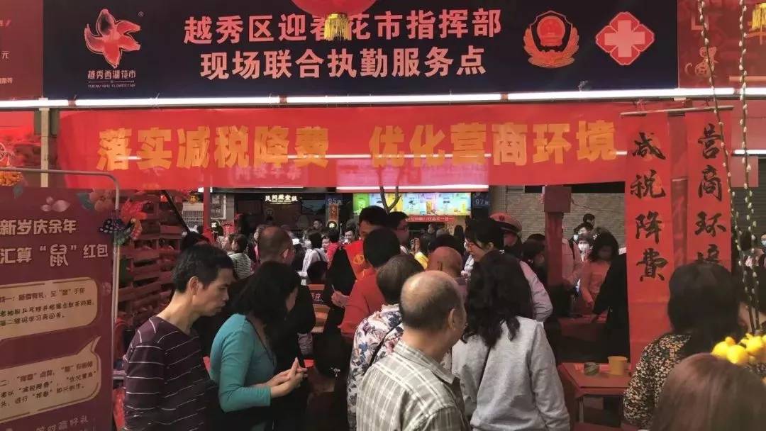 一年一度的 “越秀西湖”花市 ,密集的帳篷、琳瑯的商品、川流的人群……除了穿梭在人群中負(fù)責(zé)安全保衛(wèi)的警察叔叔們,這里還有一群 “最美逆行者”!
