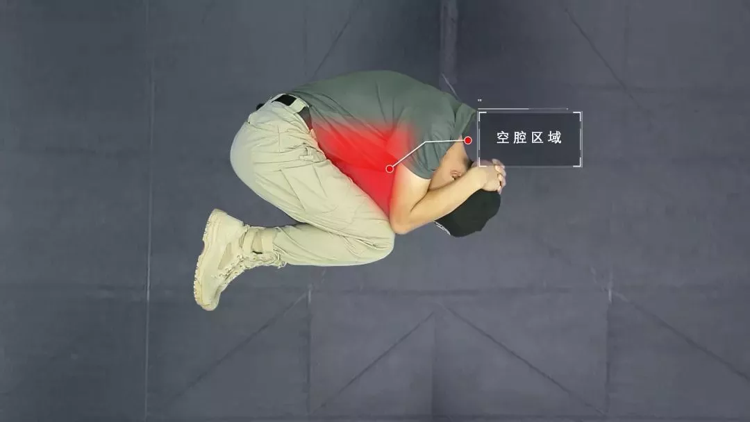 注意: 手肘和膝蓋連起,形成空腔區(qū)域,這樣可以有效地防護胸腔,還可以保留足夠空間獲取空氣。