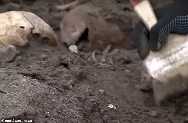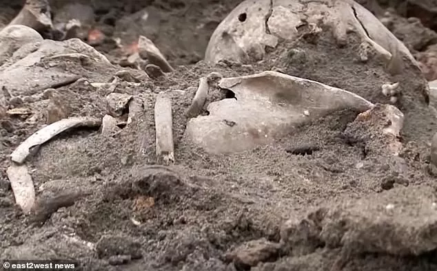 在波蘭邊境布雷斯特市的一個建筑工地上,男人,女人和兒童的頭骨上都有槍傷。