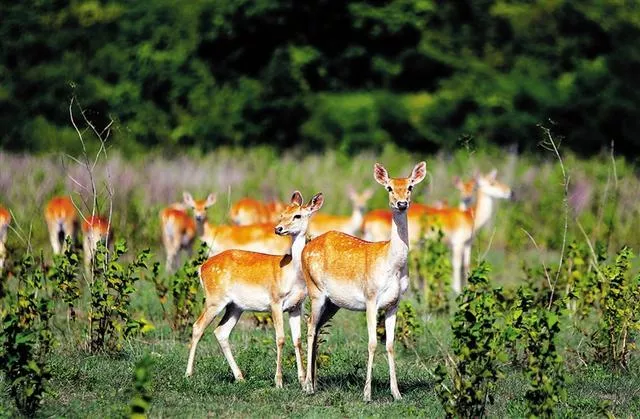 在保護區(qū)里,坡鹿是一道亮麗的風景,它們或獨自飛奔,或三五成群,悠然覓食,神情自若,姿態(tài)優(yōu)雅,氣質天成,充滿靈性,故有“東方精靈”的美名。