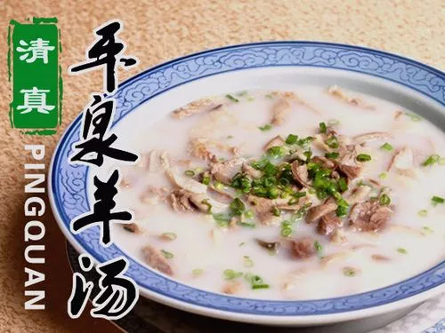 平泉羊湯的制作原料主要有羊肉、辣椒油、胡椒面、鹽等,鮮美清香,肥而不膩,無膻味。平泉羊湯制作技藝帶有濃郁的地方特色和民族特色,有別于其他地區(qū)羊肉湯、羊骨湯的制作方法,主要以羊雜為主料,與羊骨、羊頭等共同熬制。平泉羊湯的原料選用和制作流程在我國(guó)眾多羊湯制作方法中獨(dú)具一格、別有特色,在制作過程中有著選料精、入鍋細(xì)、湯要老、輔料全等特點(diǎn),配合著嫻熟的刀工,將羊雜切成細(xì)細(xì)的條狀,撒上綠綠的香菜沫,使平泉羊湯色、香、味俱全,大大增加了品嘗者的食欲。