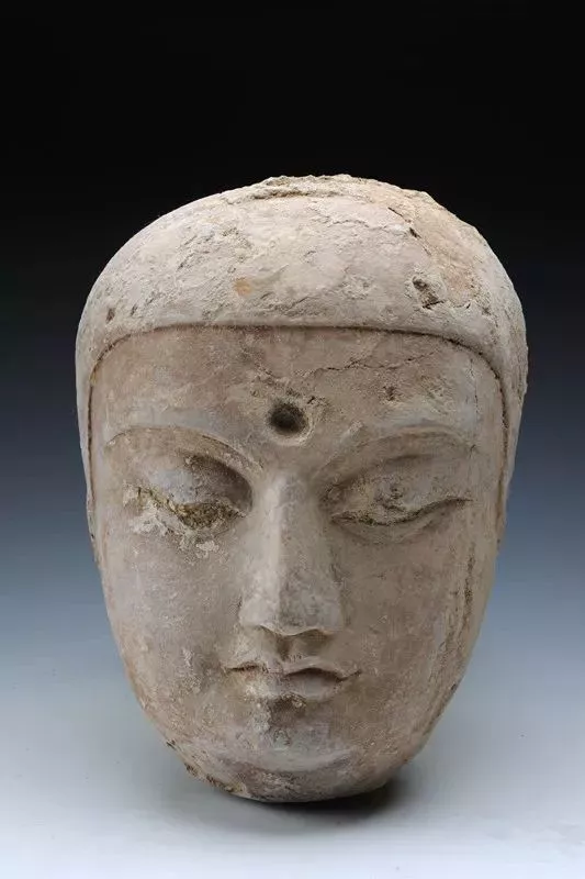 (遺址內(nèi)發(fā)現(xiàn)的佛頭 陜西省考古研究院供圖)