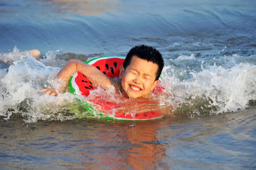 小朋友則在海水里玩的很恣。淺水區(qū),又有游泳圈,還有大人在視線內(nèi)照看,就讓他們盡情的玩吧。