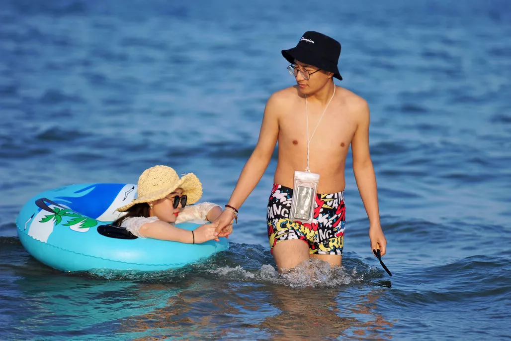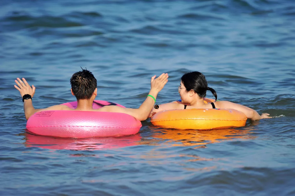 時節(jié)過了夏至,就是盛夏季節(jié)了。號稱“20度”的青島,也有點快挺不住了,氣溫已經(jīng)高達29度。在金沙灘海水浴場,周末涌入眾多游客和市民前來戲水納涼。滿眼美景令人眼花繚亂,下面就隨小編的鏡頭看過來。圖中一位小伙子牽著女友的手,在海水中漫步,這個情景,估計所有的小伙子都樂意去做的。