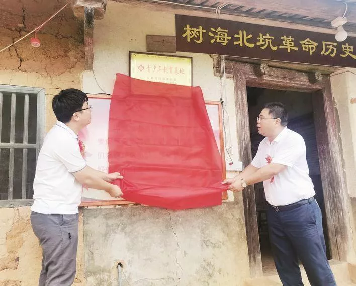 為留住南靖樹海紅色記憶,進(jìn)一步教育廣大黨員群眾,特別是青少年熱愛中國共產(chǎn)黨和中華人民共和國,發(fā)揚革命傳統(tǒng),傳承紅色基因。8月26日上午,南坑鎮(zhèn)黨委、南坑鎮(zhèn)關(guān)工委在樹海翻身樓暨樹海北坑革命歷史展館成立“青少年教育基地”。該鎮(zhèn)黨委書記(鎮(zhèn)關(guān)工委名譽主任)陳國明、鎮(zhèn)黨委組織委員(鎮(zhèn)關(guān)工委主任)陳國平、鎮(zhèn)掛鉤北坑村領(lǐng)導(dǎo)張加福等與北坑村黨支部書記賴啟清、駐村第一書記王群、村委會主任賴原龍、村黨支部組織委員陳麗華等一起舉行青少年教育基地成立儀式。