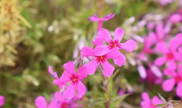 小小的芝櫻花有5枚花瓣,每朵花瓣前端微微凹缺,花朵盛開(kāi)時(shí)形狀如同櫻花,而莖如矮草般匍匐于地。