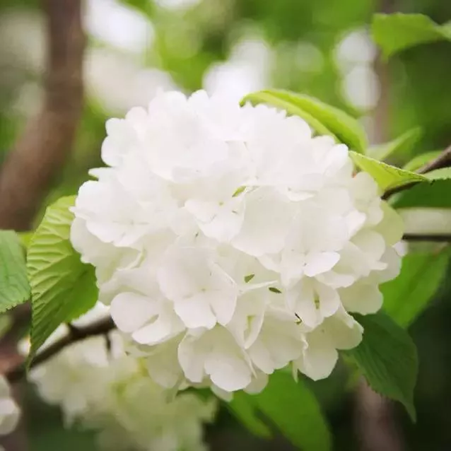 每年的四五月份,瓊花便會(huì)轟轟烈烈地盛開(kāi)。揚(yáng)州人喜歡用“花大如盤(pán),潔白如玉”來(lái)形容其團(tuán)團(tuán)的花簇;我卻覺(jué)得“盤(pán)子”和“玉”的比喻太常見(jiàn)了,很難配得上瓊花的清淡素雅。