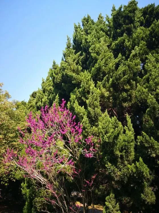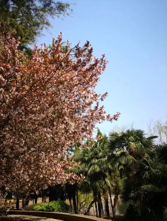 環(huán)園小道兩側(cè)花木扶疏,紫荊、牡丹、迎春、繡球丁香、紅梅等130余種名花異草,賞心悅目,沁人心脾。紅楓、青楓、桂花、柏樹、香樟、廣玉蘭等六大林帶,錯落有致,巍為壯觀。