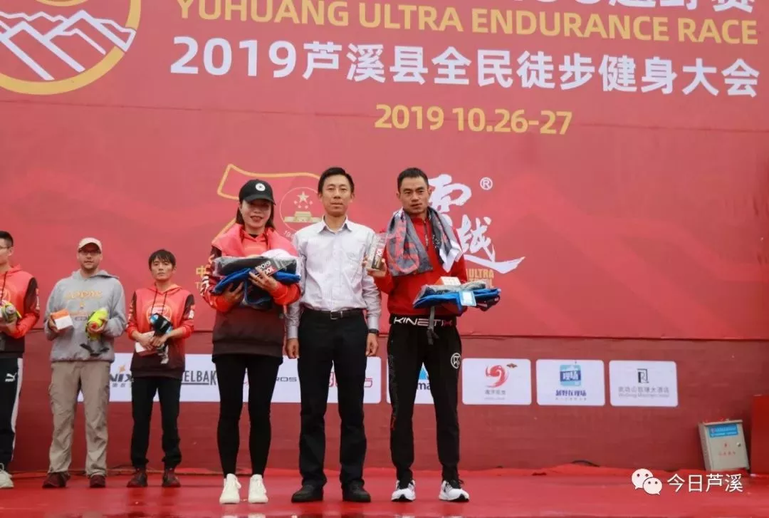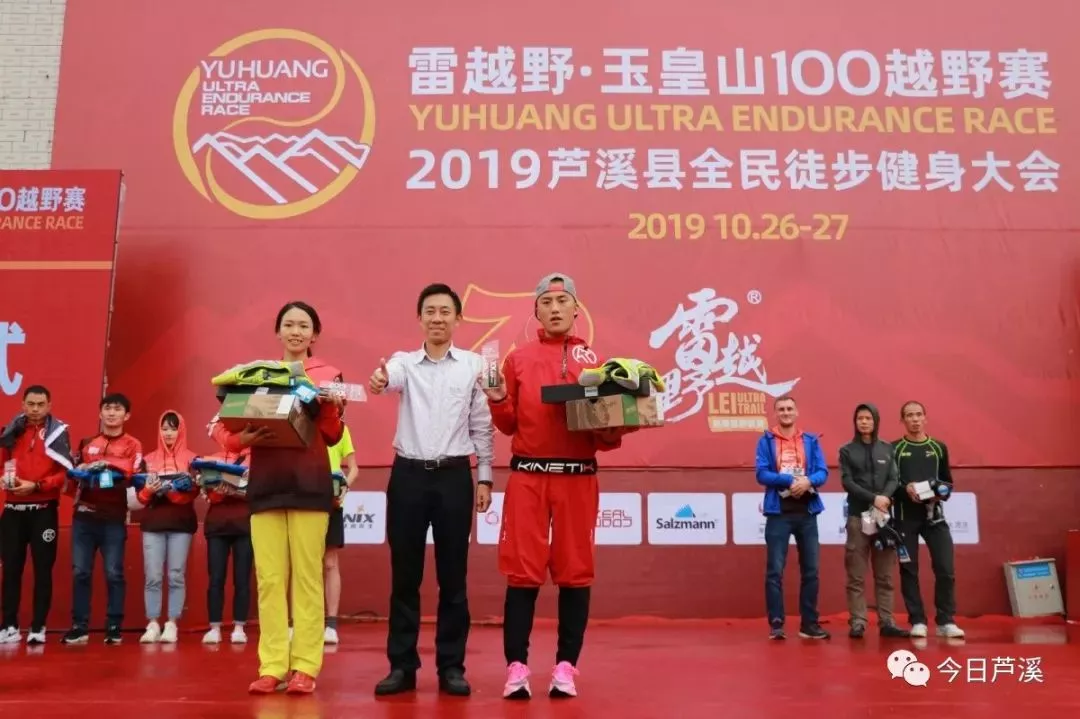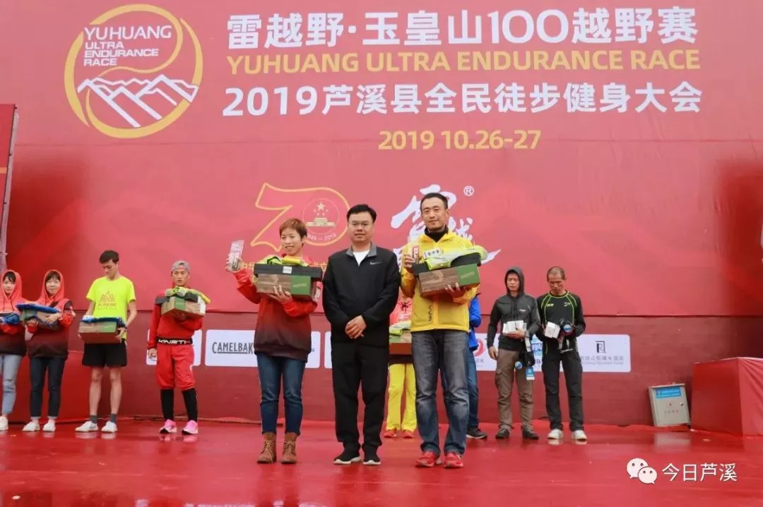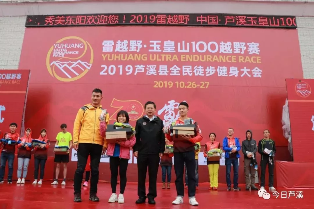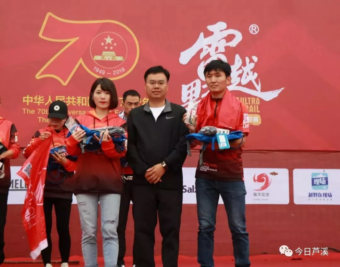 ?縣委書記楊勁松,雷越野創(chuàng)始人、賽事總監(jiān)于雷為100公里組、50公里組冠軍頒獎