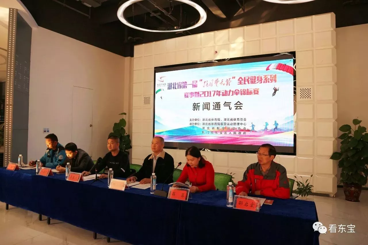 湖北省航空運動協(xié)會主席劉心安宣讀賽事批復;湖北省航空運動管理中心辦公室主任李正凱宣讀比賽通知;區(qū)委常委、宣傳部長昌蓉主持新聞通氣會;區(qū)政府辦公室副主任和滇紅,區(qū)文體新廣局局長邵啟宏,世界滑翔傘冠軍、東寶區(qū)航空運動顧問陳海平等嘉賓參加新聞通氣會。