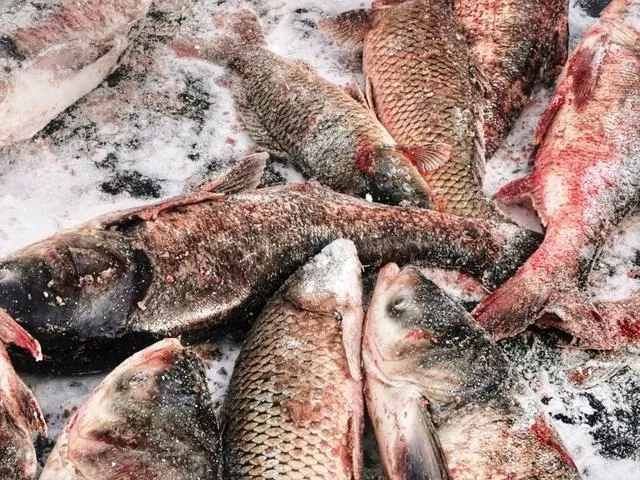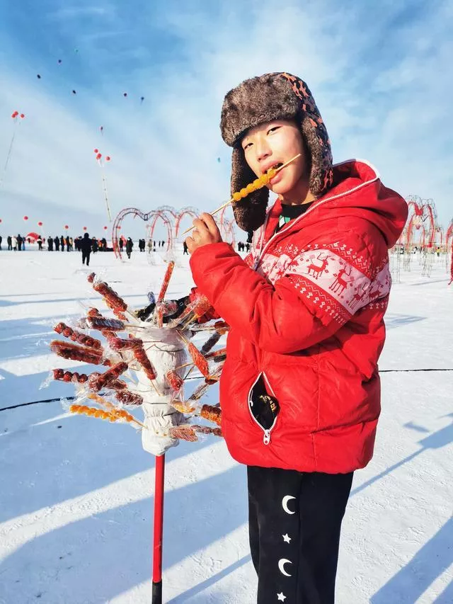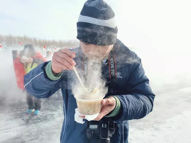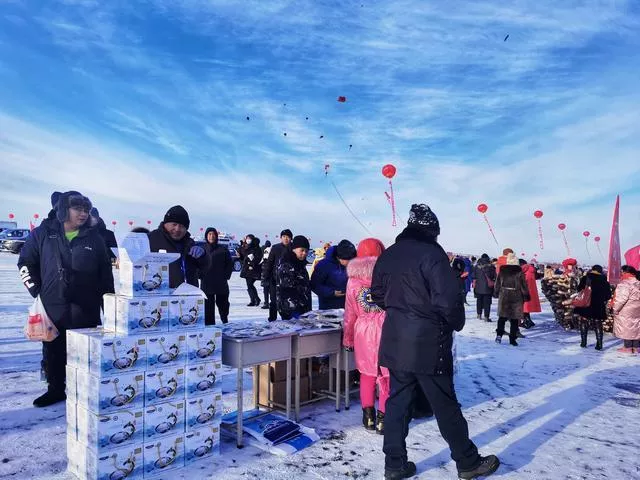 湖水凍魚的冰景,冰凍的大魚身上貼著逢年過(guò)節(jié)會(huì)貼的“?!弊?,象征吉祥好運(yùn)的頭魚,2888條胖頭魚被凍成一條“船”,成群結(jié)隊(duì)的鯉魚、鳙魚、鯽魚漁民從一個(gè)小小的冰洞中拽出,捕出的部分魚現(xiàn)場(chǎng)就被煮出新鮮魚湯,可以免費(fèi)品嘗,快遞也有專區(qū)設(shè)了專門的場(chǎng)地也有優(yōu)惠活動(dòng)。