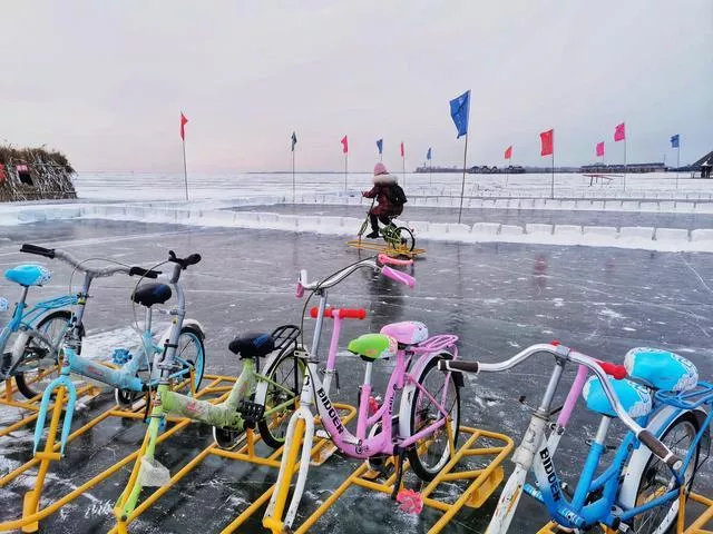 杜爾伯特的連環(huán)湖鎮(zhèn)由相連的18個(gè)湖泊組成,湖泡相連,水禽有240余種,地?zé)豳Y源豐富。夏季煙波浩渺的連環(huán)湖非常秀美,而冬季冰雪世界澄凈卻并不寂寥無(wú)聲。人們?cè)诒┲械男δ樖寡└裢饷?。雪?a href='/techan/15186' target=_blank>風(fēng)箏、冬釣、冰雪大沖關(guān)、堆雪人大賽……眾多娛樂(lè)項(xiàng)目像一朵朵色彩艷麗的花綻放在冰上。