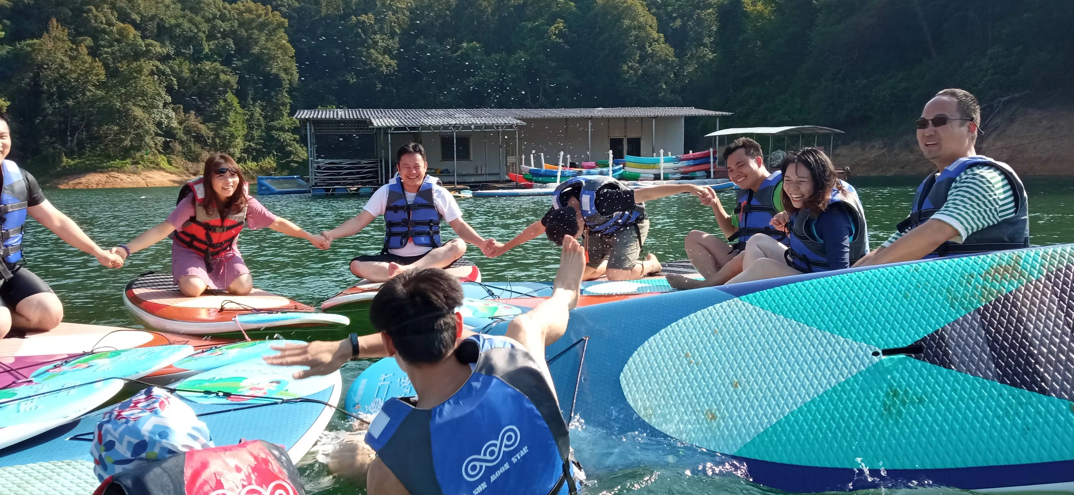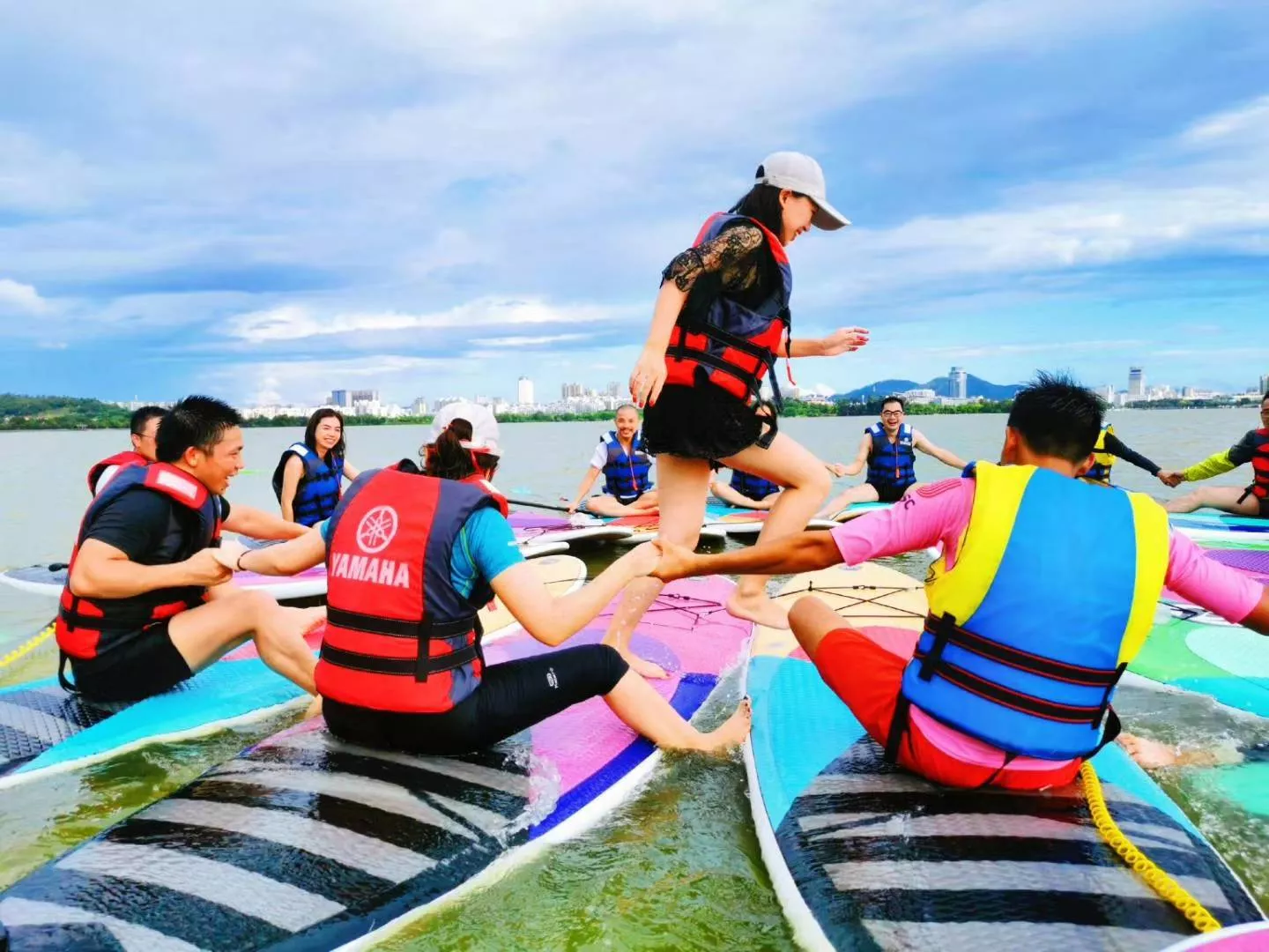 槳板體驗(yàn)在猶江的南湖國(guó)際垂釣基地進(jìn)行,由槳板俱樂(lè)部的冠軍教練細(xì)心指導(dǎo)下,這是全新的運(yùn)動(dòng)游旅文化體驗(yàn),槳板基本動(dòng)作很快上手,特色是在水面進(jìn)行團(tuán)建游戲,全程充滿歡笑,教練協(xié)助拍照攝影,并特別的在夕陽(yáng)時(shí)光劃著槳板,尤富詩(shī)意。