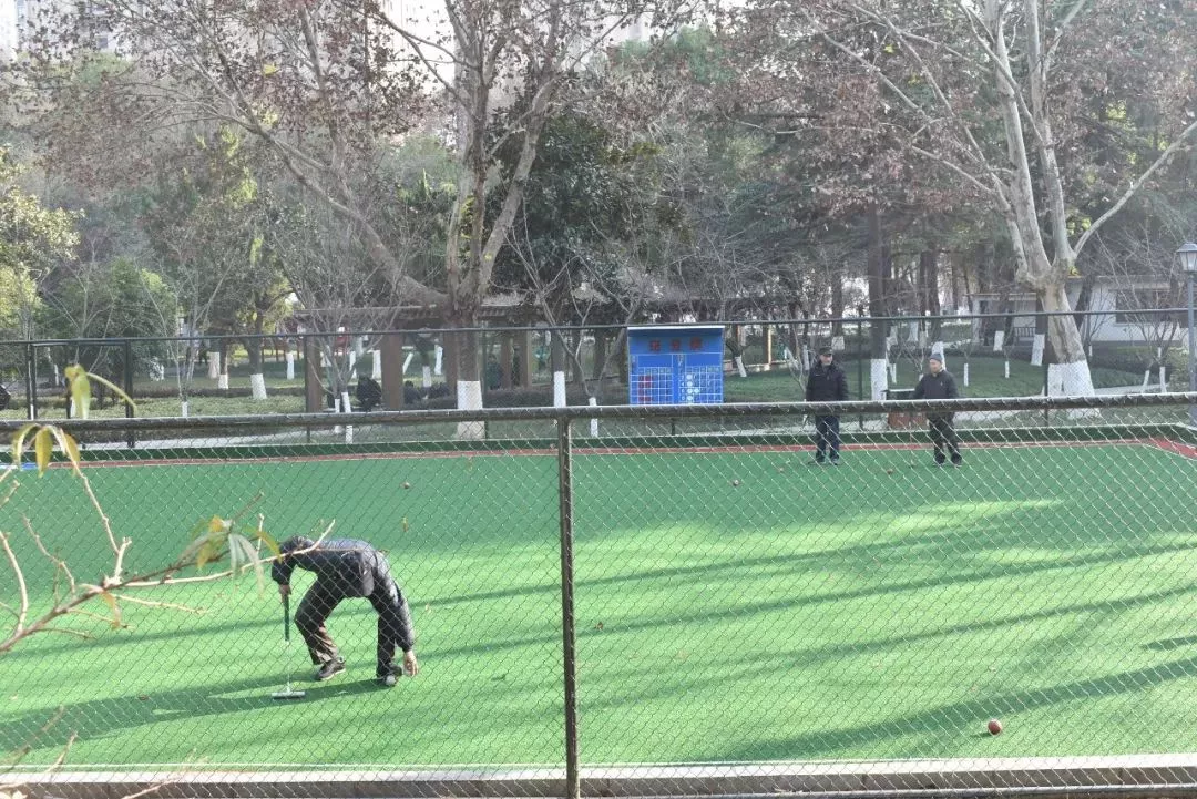 西面的場地內(nèi),看到有幾位老爺爺們拿著球桿在比劃著...