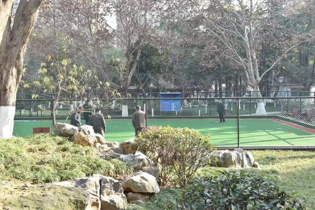 銅鐘的東面依次有:活動(dòng)室、籃球場、乒乓球場、戶外健身區(qū)等。每每散步至此,總能看到:三五人一組在觀棋;乒乓球場上一對一;有氧健身的人們...這一幅幅和諧的畫面,不正是我們所向往的生活嘛!
