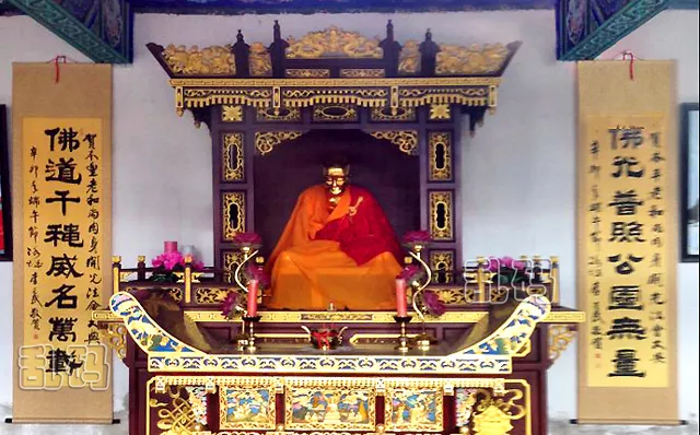 鐘靈寺最珍貴的一尊佛像位于藏經(jīng)樓北側(cè)的肉身殿,殿內(nèi)供奉著本豐和尚的肉身像。本豐和尚19歲出家,因?yàn)樗怯X悟方丈的九叔,于是被人們尊稱為“九爺”。本豐和尚生活異常樸素,于2008春盤腿端坐而往生,享年88歲。