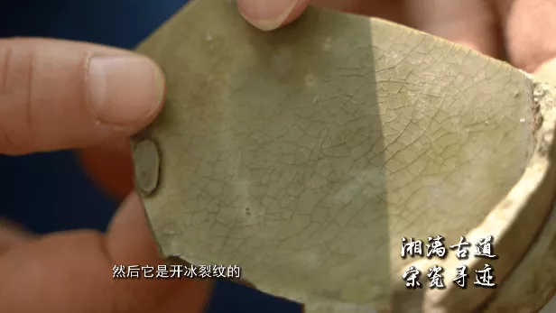 我現(xiàn)在手里拿的這個(gè)就是一個(gè)青釉瓷碗的底部,然后它是開(kāi)冰裂紋的,這個(gè)釉色比較瑩潤(rùn),說(shuō)明當(dāng)時(shí)它的燒制水平就是比較高了。
