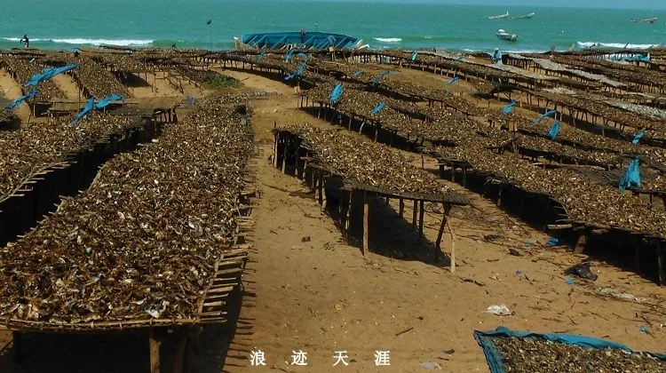 這里是海邊魚類加工廠。烘干打包出口,說不定還出口到我們國家呢。