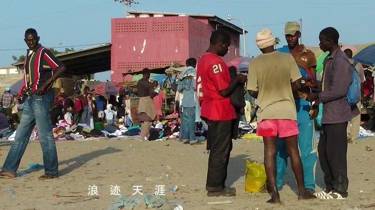 沙灘上也有衣服攤位,一片混亂,這里是真正的塞內(nèi)加爾百姓生活,你跟著旅行團去是看不到這幅畫面的,整天坐在車上,導(dǎo)游沒膽量讓你們這樣近距離和黑人窮人接觸,怕東西被偷被搶,去非洲旅游要的就是膽量和冒險。