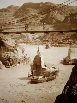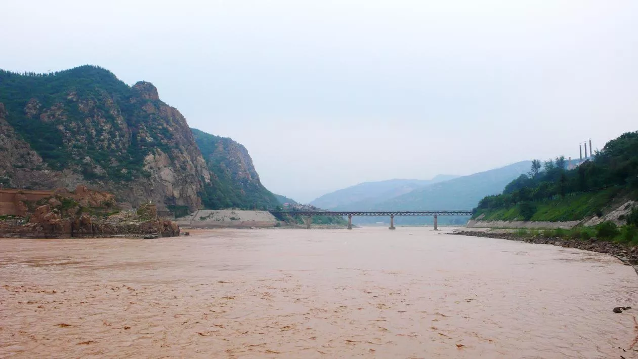 帆船通過黃河“三門峽”,不遠處是砥柱的“身影”