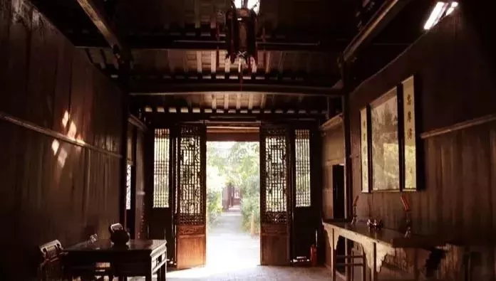 楊振寧舊居具有典型的徽派民居風(fēng)格,通過裸露的磚石和不加任何裝飾的馬頭墻端部,顯得外墻面更加融入街巷空間。灰瓦覆頂防曬雨淋,未經(jīng)粉飾的磚石墻面防火又防潮。同時(shí),馬頭墻掩口的磚雕、瓦礫的紋理布置得體,氣氛親切而又尺度宜人。其次,室外門窗裝飾主要表現(xiàn)在入口大門、外墻門窗罩。入口大門作為建筑入口的標(biāo)志,經(jīng)過后期的翻修與擴(kuò)建,更加具有書香氣息。大門上方的匾額與周圍的聯(lián)排木制門窗顯得親切協(xié)調(diào)。尤其是門窗的紋理以及比例關(guān)系,顯示出楊振寧舊居早期的古樸面貌。