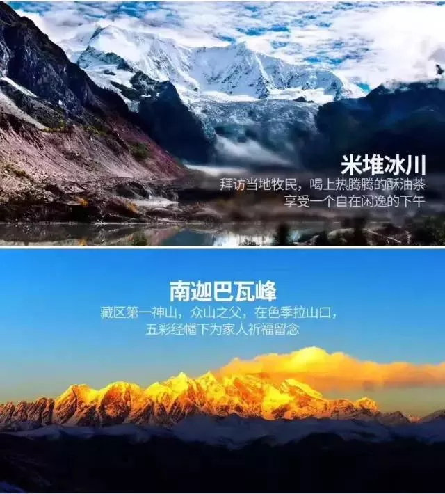 推薦行程:早晨起來(lái)后,驅(qū)車(chē)前往雅魯藏布大峽谷景區(qū),沿途你可以欣賞到苯日神泉、尼洋河觀景臺(tái)以及兩江交匯處的迷人景色。暢游中國(guó)十大峽谷之首的雅魯藏布大峽谷(峽谷長(zhǎng) 110 公里,往返約5-6 小時(shí)),行至派鎮(zhèn).在這里你不僅可以欣賞到美麗的峽谷景色,壯觀的跌水,雄偉的雪山,還可以欣賞到曲角吾寺、佛掌沙丘、迎客松等自然人文奇觀。然后驅(qū)車(chē)前往直白,在直白最近距離欣賞并拍攝中國(guó)十大名山之首的南迦巴瓦峰,觀賞聞名于世的雅魯藏布江大拐彎,后返回八一鎮(zhèn),回到酒店,美美的睡上一覺(jué),晚上品嘗美食石鍋雞