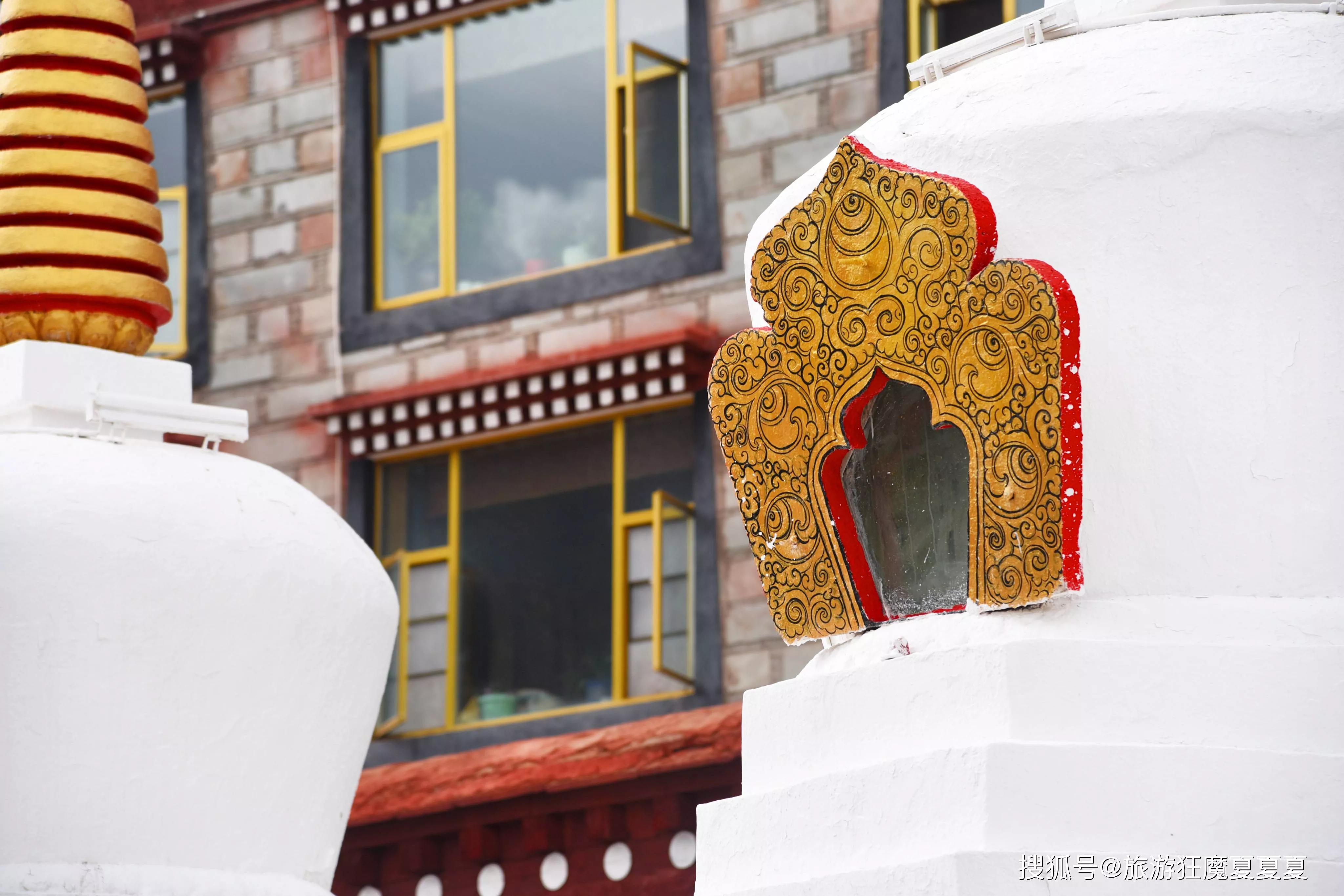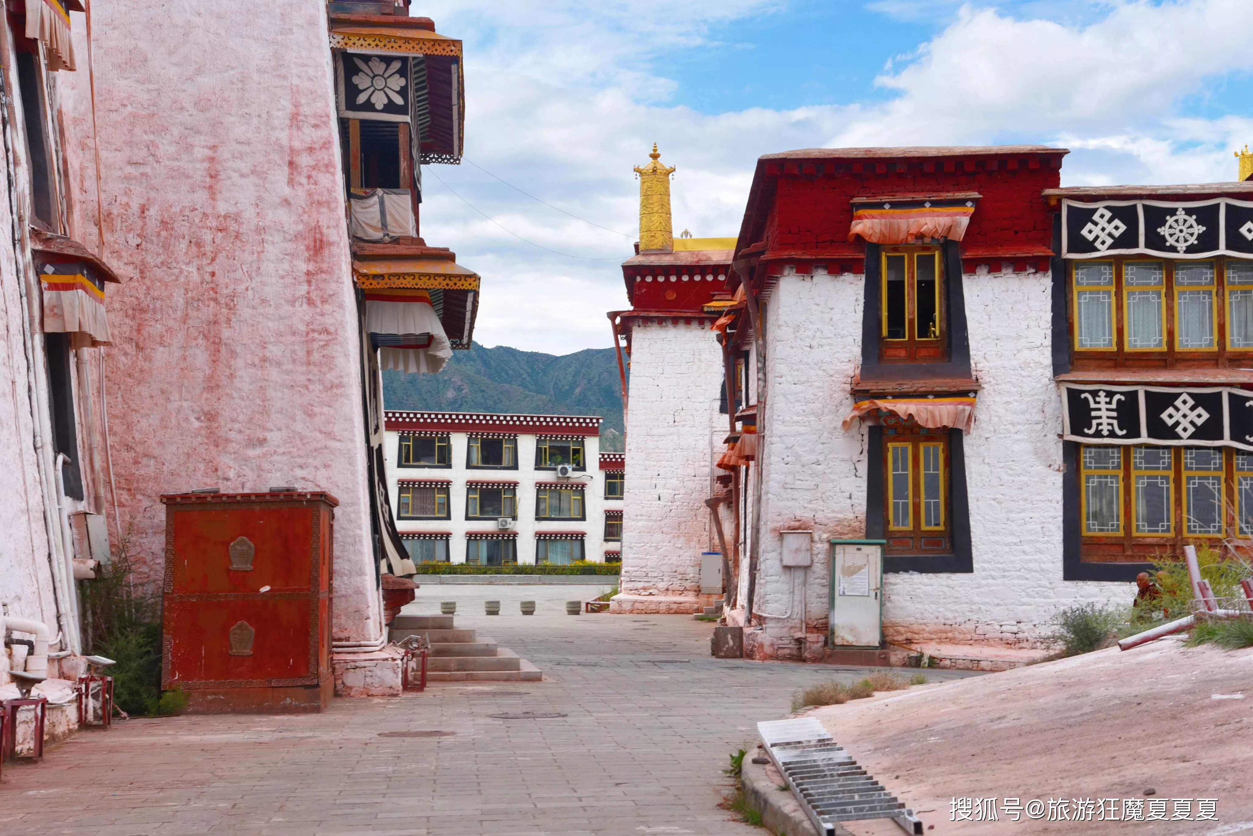 剛到寺院門口,居然發(fā)現(xiàn)入口竟然在右側(cè),藏傳佛教講究“輪回”,一般是按照順時針走,我雖然不是佛教徒,但是往右走直接進入大門口相當(dāng)破壞了當(dāng)?shù)氐囊?guī)矩,因為寺廟外圍都是轉(zhuǎn)寺的信徒,這樣特別不禮貌,出于對當(dāng)?shù)氐淖鹬兀乙埠退麄円黄鹄@場一周在進入寺廟,路上除了可以看到十分精美的佛塔之外,還遇到了一個特別熱情的藏族小伙兒,一路上和我分享他在西藏各地拍攝的照片,感受到了來自藏區(qū)的熱情。