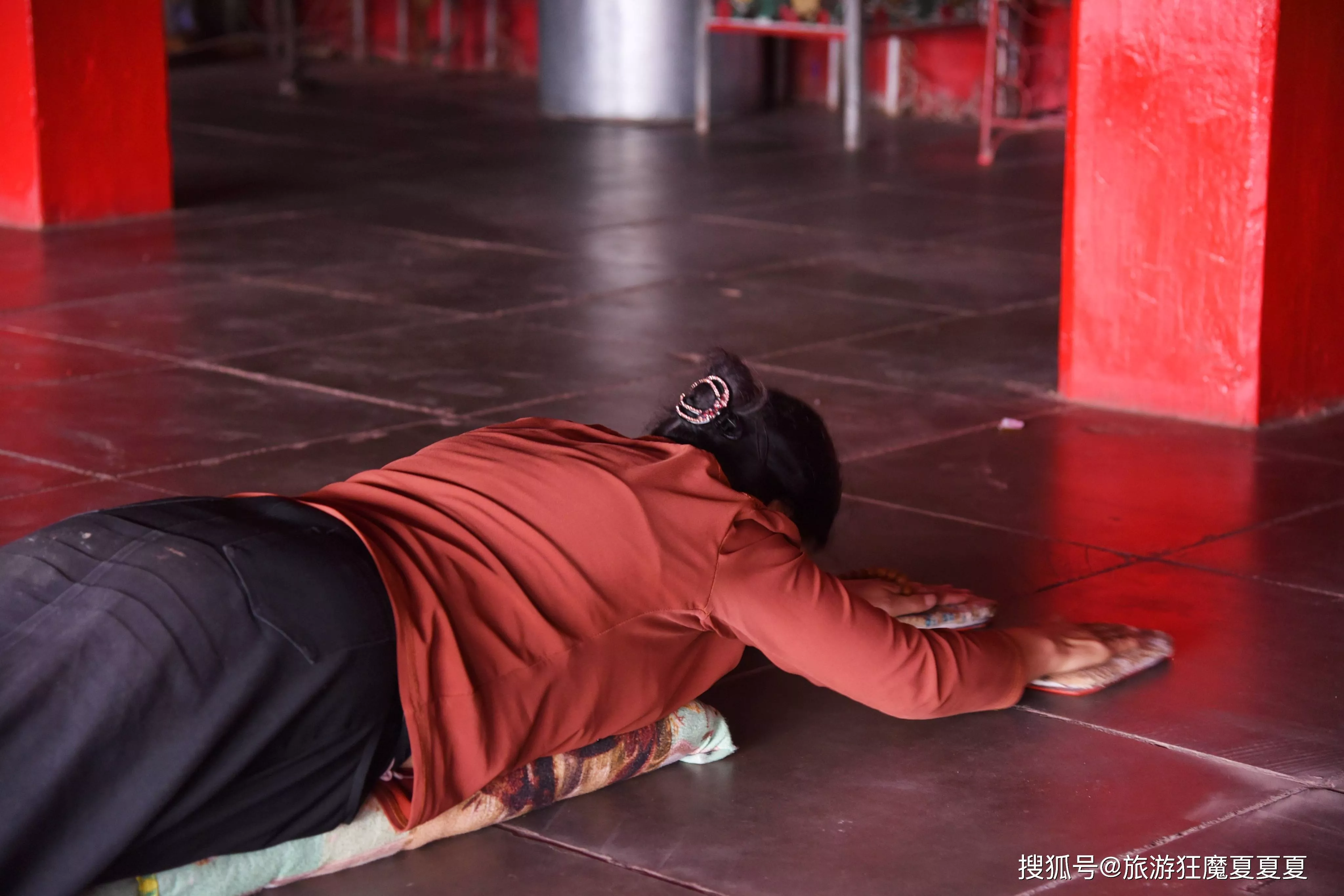 好玩的是,強巴林寺的僧人修行居然是和學(xué)校一樣的模式,都有著寒暑假,寒假時間為一個月、暑假時間有兩個月,放假期間除了值守的僧人之外,其他僧人都回家,因此在假期時間寺院里面的僧人不多,但是仍然能看到不少信眾,除了之前提到的門口轉(zhuǎn)寺的信徒,各個大殿門口也不乏有著磕長頭的虔誠者。