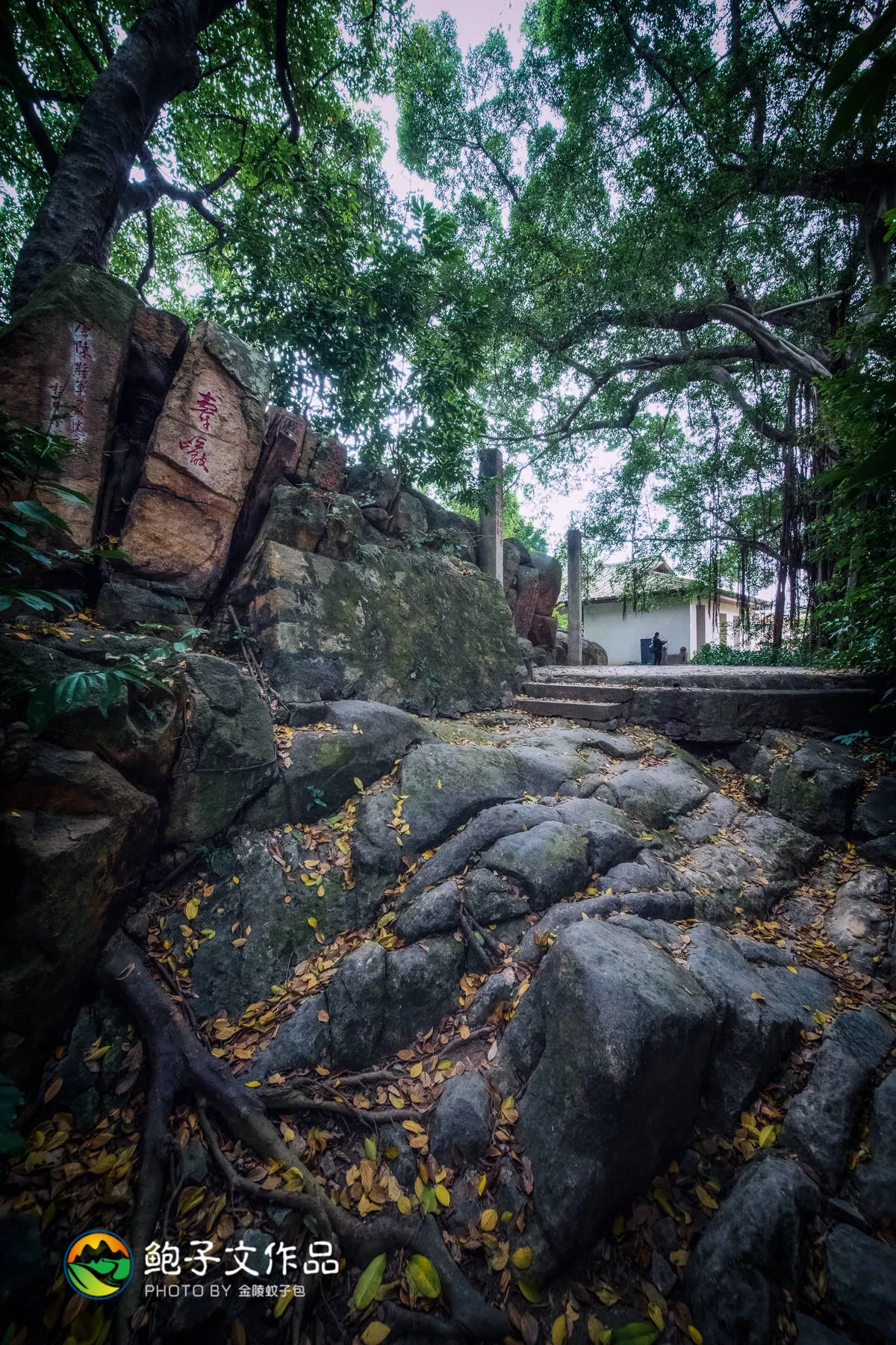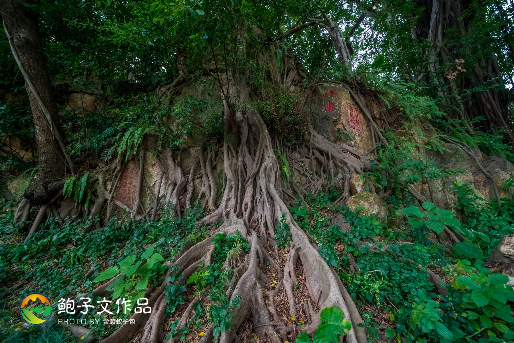 順著歐冶池,往南走,穿過蔥蘢榕樹,可見有綠色護欄的石梯。拾階而上,古樹參天,便可看到泉山摩崖題刻。冶山又叫泉山,據(jù)說從唐宋至民國,不少文人墨客會在上面潑墨揮毫,吟詩作賦、鐫刻文字。所以現(xiàn)在,在冶山依然可以看到一些當初他們留下來的書法墨寶、詩詞文章,這便是泉山上最具特色的“泉山摩崖題刻”。
