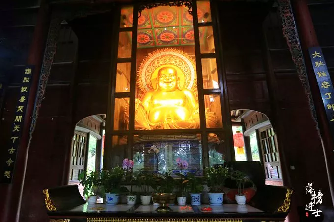 伏虎寺歷經(jīng)千年,曾幾度興廢,幾經(jīng)修葺。寺內(nèi)建筑大多紅漆斑駁,苔痕重重,一副久經(jīng)滄桑的模樣。進(jìn)入寺門,首先就到了彌勒殿,殿內(nèi)供奉的是笑口常開(kāi)大肚彌勒佛坐像,金身泥塑。