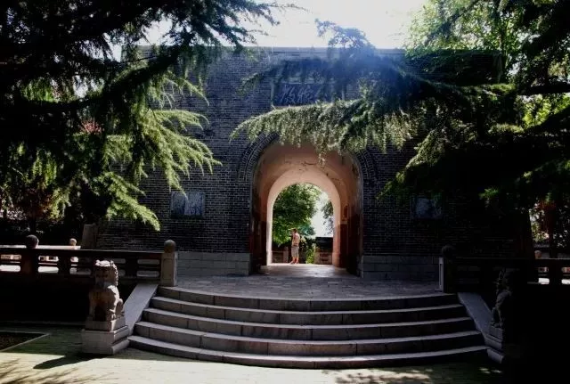 一塊上書“教稼圣地”的牌匾懸掛中間,牌匾上的題詞為民革中央原主席屈武所書,下方紅色木門大敞,兩邊各一憨態(tài)可愛的小石獅,石獅坐臥在直立的圓形石鼓之上,仰頭望著遠(yuǎn)方,似是守望著這片圣地的武士。