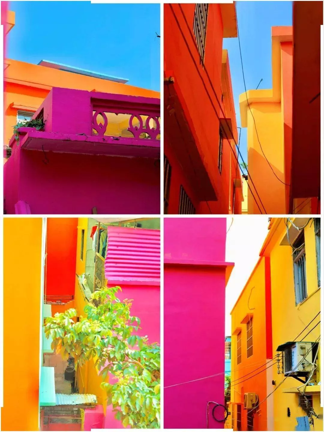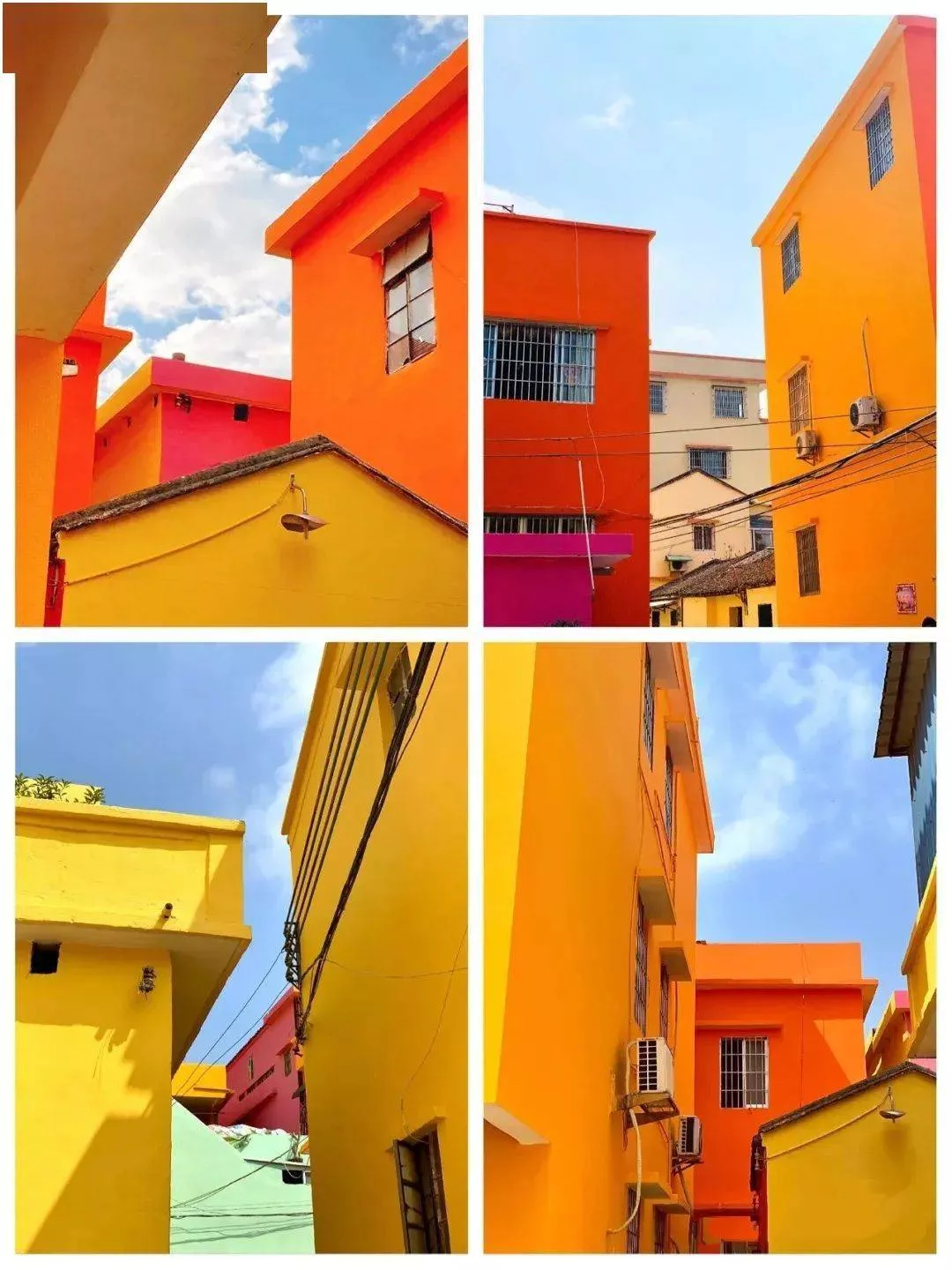每個(gè)房子墻面的色彩飽和度很高,