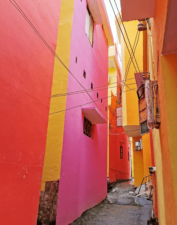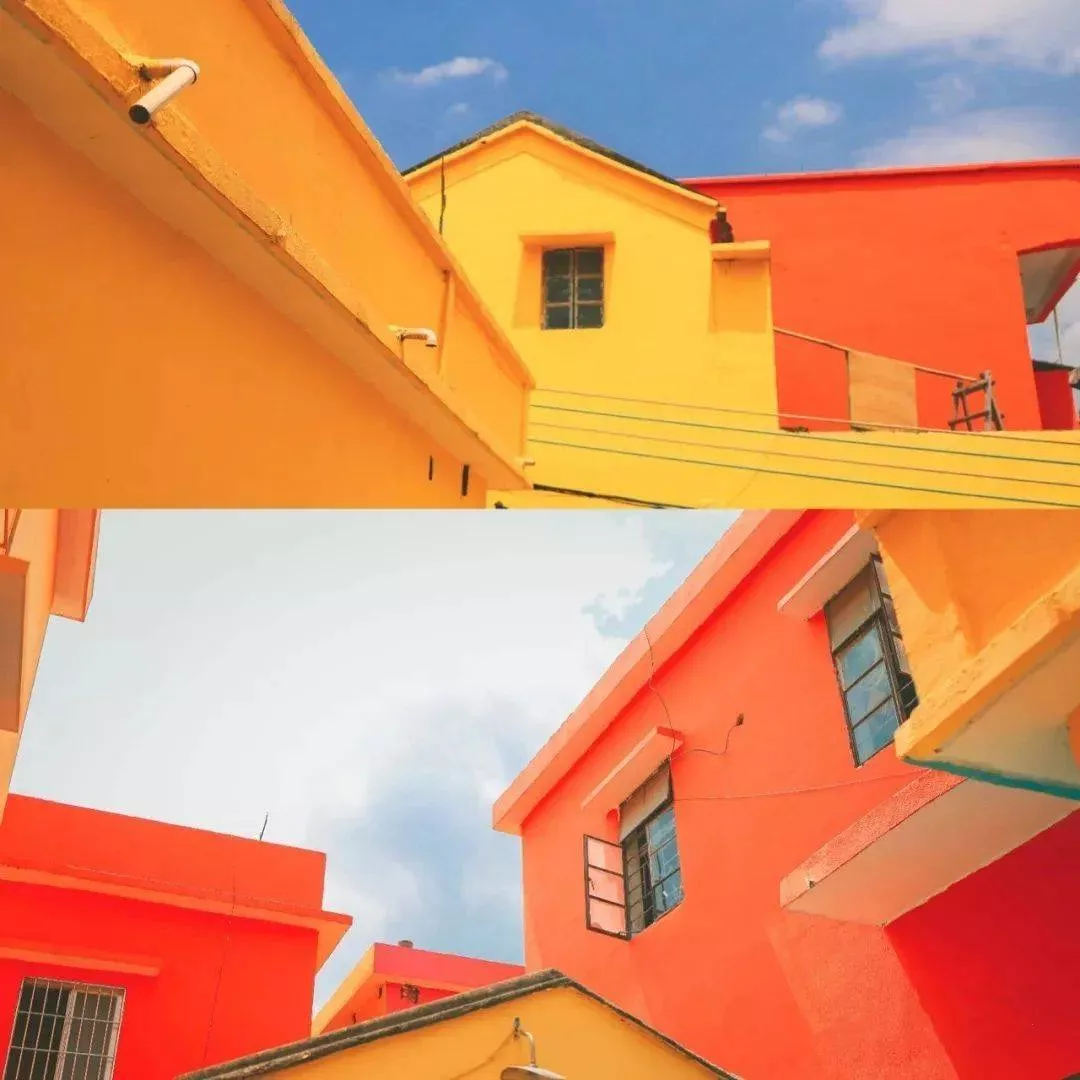 這是一個(gè)把舊房子改造成五彩斑斕彩虹色的小村子,