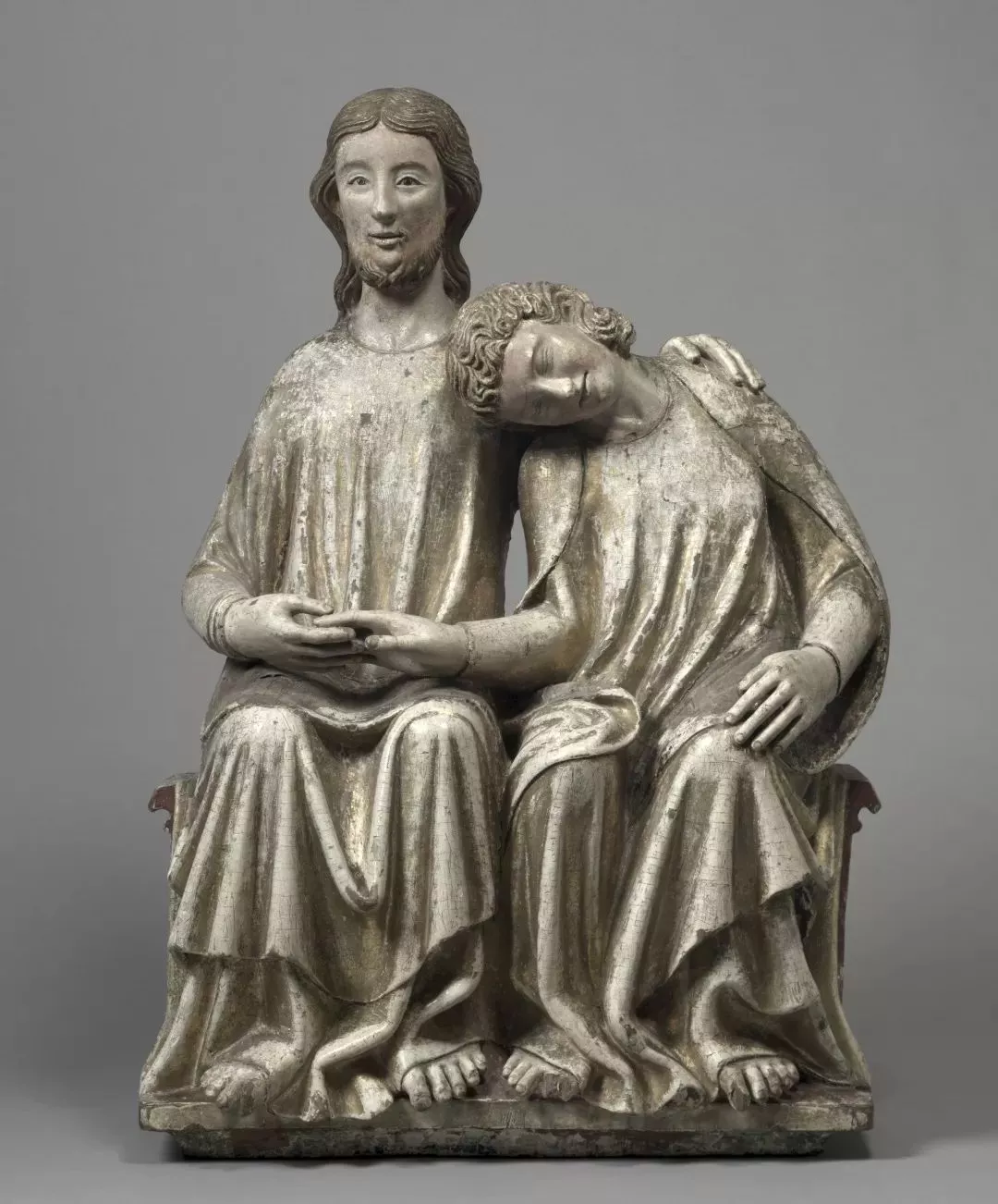 基督和圣約翰福音傳教士雕像,材質(zhì)為鍍金橡木,整體高92.7厘米,寬64.5厘米,現(xiàn)藏于克利夫蘭藝術(shù)博物館。這座雕像是位于瑞士斯瓦比亞的雕塑群中的一個(gè),十四世紀(jì)時(shí)期,許多關(guān)于圣約翰的雕像擺放在多米尼加和西多會(huì)修道院的小教堂里作裝飾。