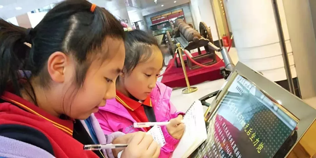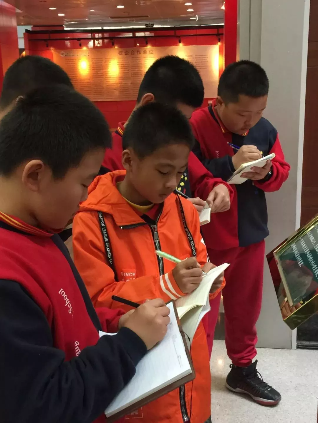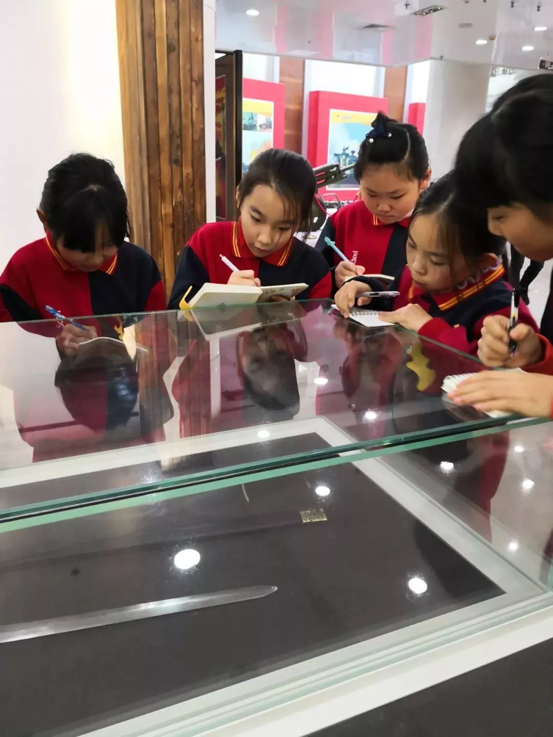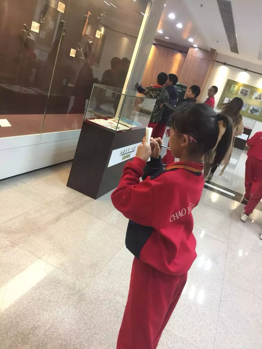 同學(xué)們時(shí)而駐足觀看展品,時(shí)而俯身仔細(xì)閱讀并記錄展品介紹;