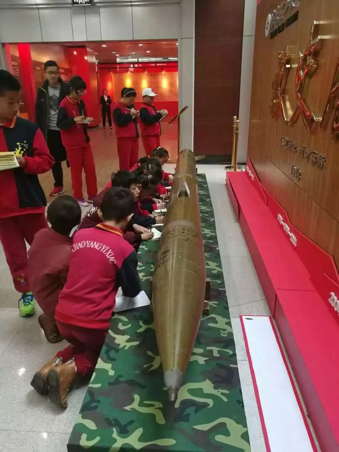 孩子們邊走邊看,被各種展品深深吸引,“東方紅一號(hào)”備用衛(wèi)星、“響尾蛇”導(dǎo)彈、三八式步槍……接連不斷的映入眼簾。