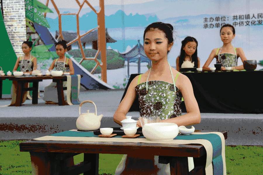 在來蘇茶場的茶藝樂園,近10位身穿漢服的小朋友向現(xiàn)場的游客展示茶藝,她們坐姿端莊,舉手投足間,透露出中國茶藝文化的獨特韻味。現(xiàn)場茶香濃郁,場面溫馨。