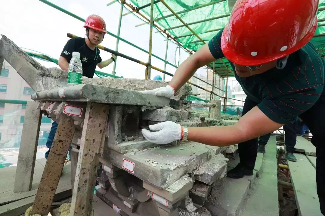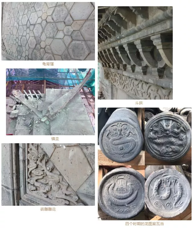 ●修繕中把2000多個構(gòu)建逐一編號,用支架固定,小心翼翼慢慢剝離。剝離后的構(gòu)件分門別類進(jìn)行擺放,每一個構(gòu)件通過工匠進(jìn)行手工修復(fù)、精心打磨、粘合,再原位復(fù)原,對祠門上的細(xì)碎磚石也進(jìn)行收集粘合。